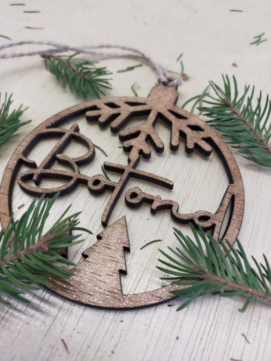 Ornament pentru brad tip glob personalizat cu nume 3D