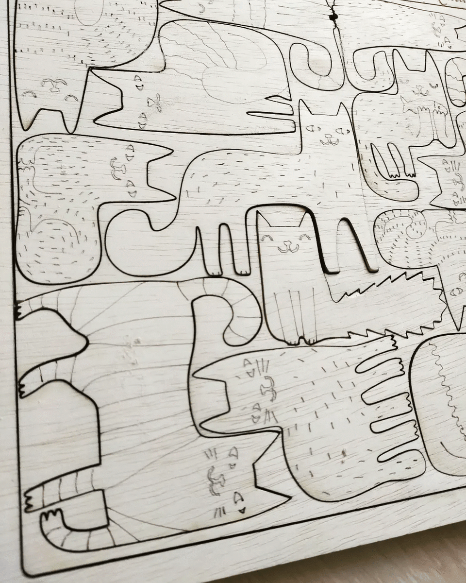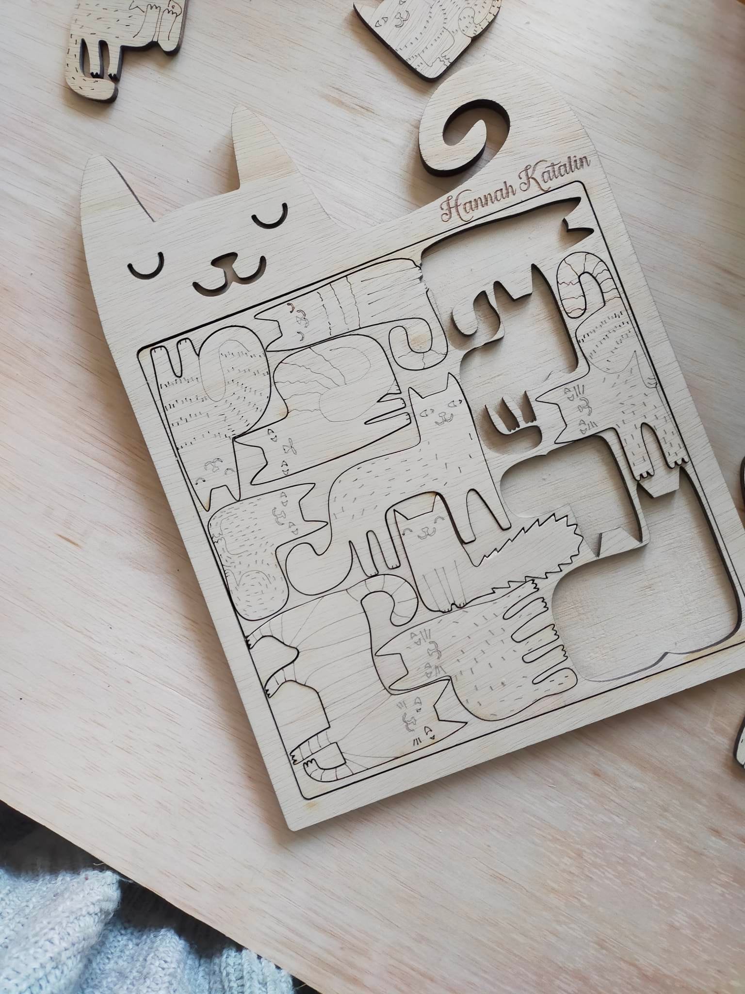 Puzzle din lemn în formă de Pisică